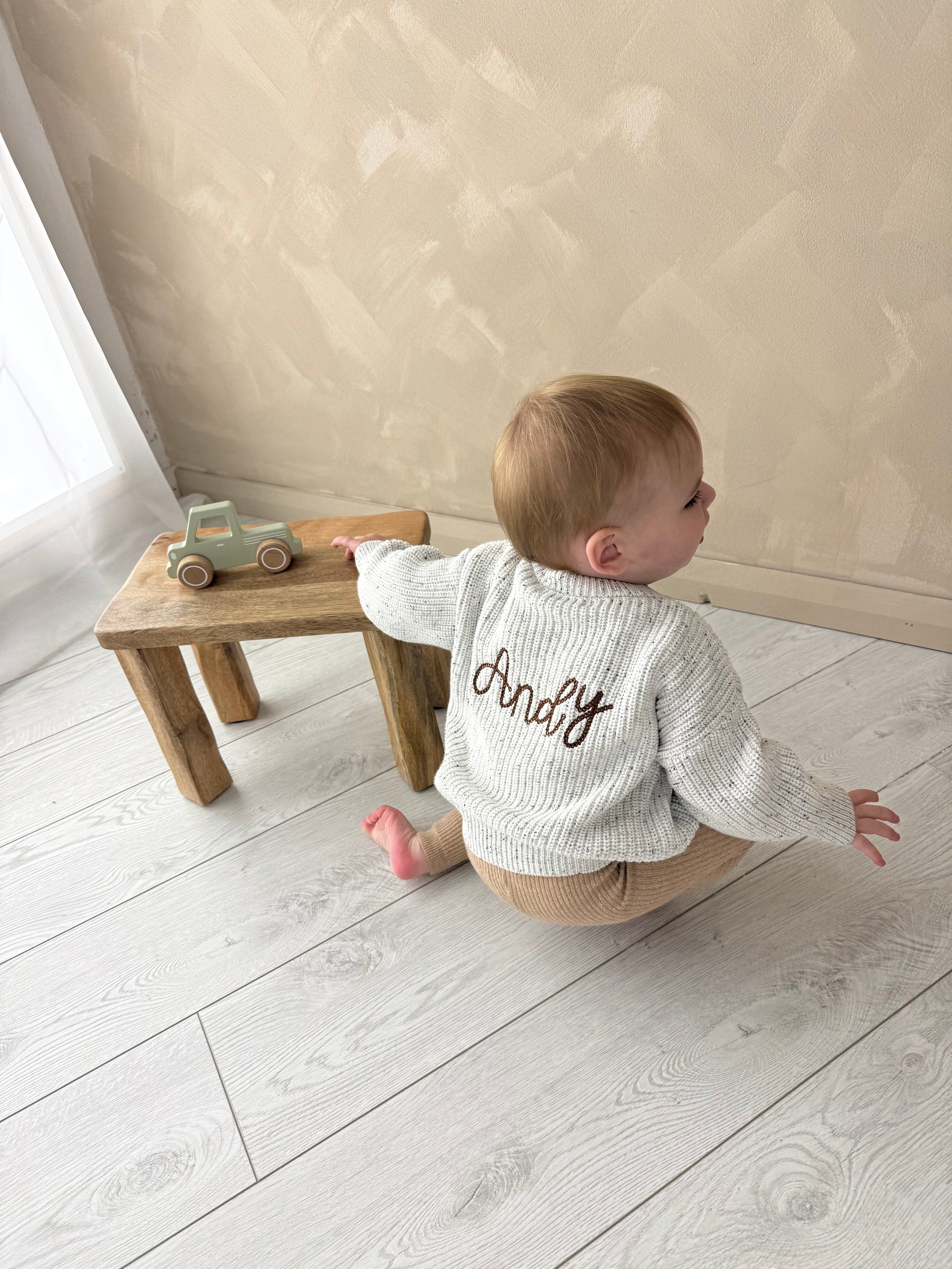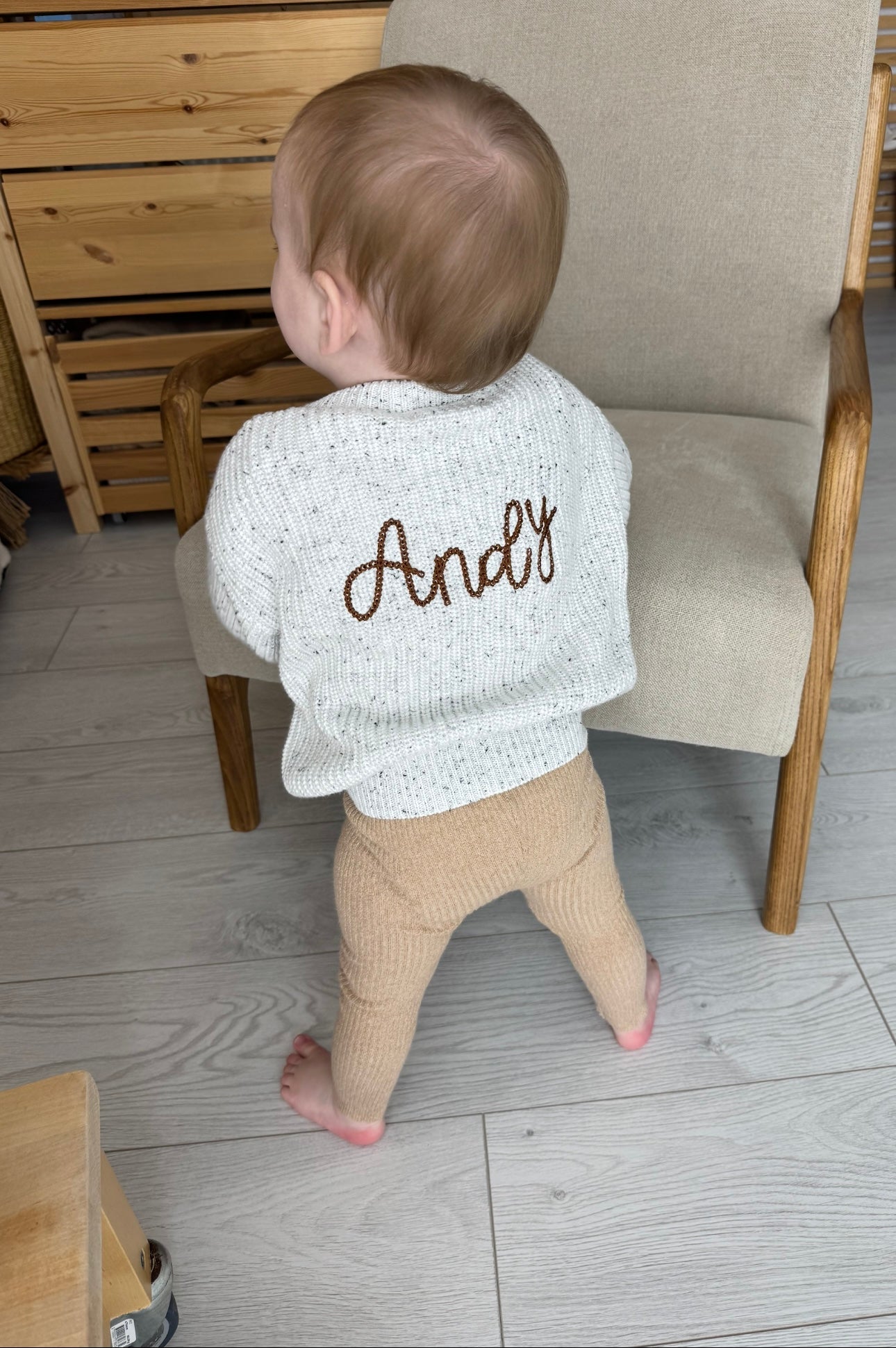 Each cardigan is custom embroidered on the back with your child’s name or a special word of your choice, creating a unique keepsake that’s both practical and meaningful.