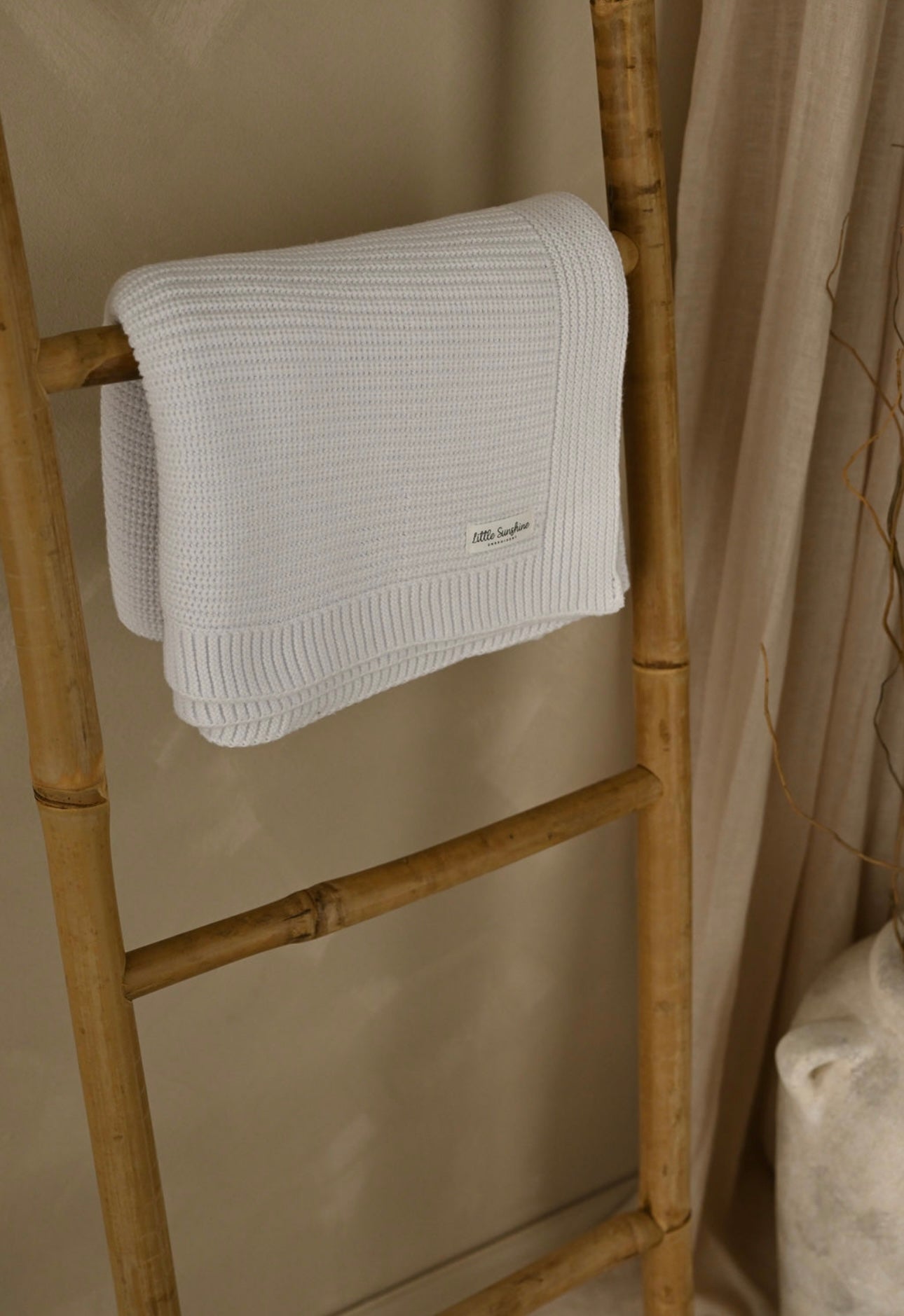 Snow white chunky knit personlised cotton baby blanket